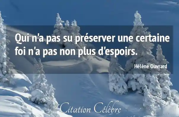 Qui n'a pas su préserver une certaine foi n'a pas non plus d'espoirs.
