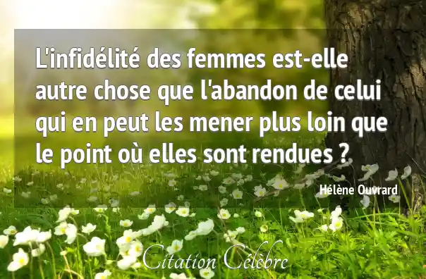 L'infidélité des femmes est-elle autre chose que l'abandon de celui qui en peut les mener plus loin que le point où elles sont rendues ?