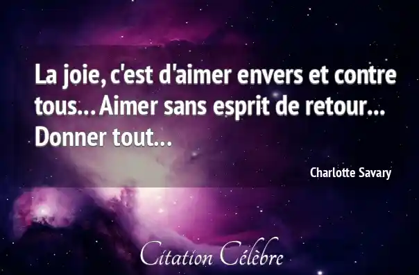 La joie, c'est d'aimer envers et contre tous... Aimer sans esprit de retour... Donner tout...