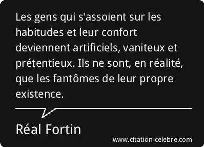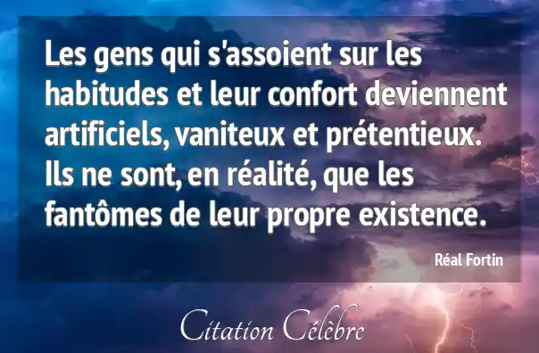 Les gens qui s'assoient sur les habitudes et leur confort deviennent artificiels, vaniteux et prétentieux. Ils ne sont, en réalité, que les fantômes de leur propre existence.