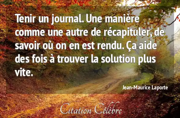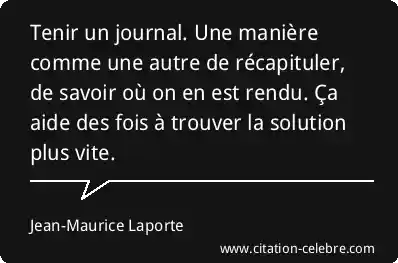 Tenir un journal. Une manière comme une autre de récapituler, de savoir où on en est rendu. Ça aide des fois à trouver la solution plus vite.