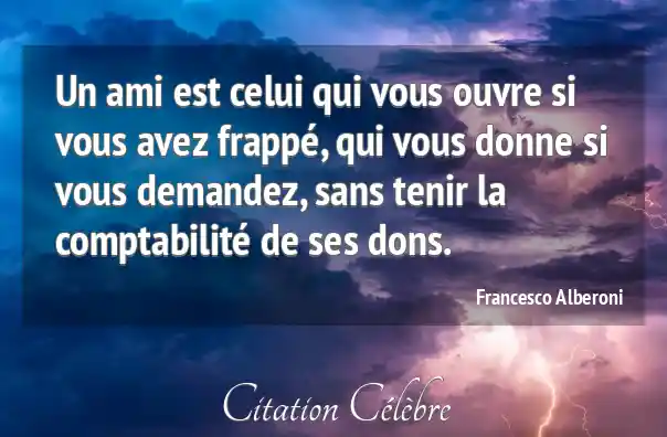 Un ami est celui qui vous ouvre si vous avez frappé, qui vous donne si vous demandez, sans tenir la comptabilité de ses dons.