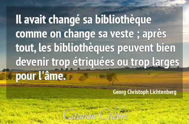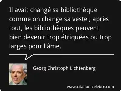 Il avait changé sa bibliothèque comme on change sa veste ; après tout, les bibliothèques peuvent bien devenir trop étriquées ou trop larges pour l'âme.