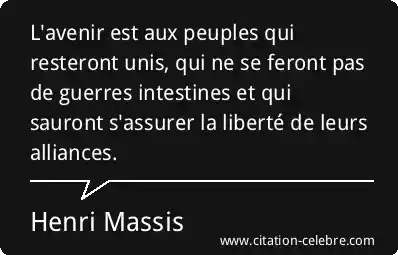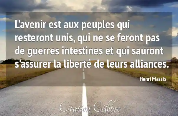 L'avenir est aux peuples qui resteront unis, qui ne se feront pas de guerres intestines et qui sauront s'assurer la liberté de leurs alliances.