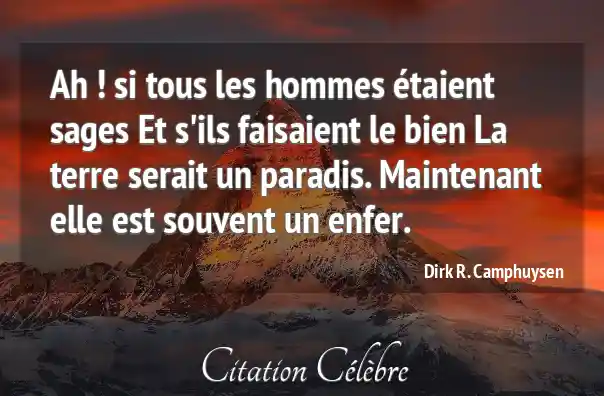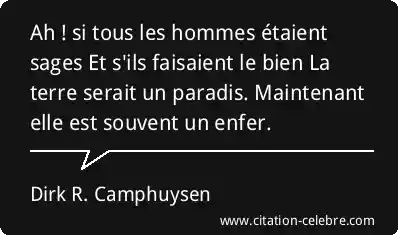 Ah ! si tous les hommes étaient sages Et s'ils faisaient le bien La terre serait un paradis. Maintenant elle est souvent un enfer.