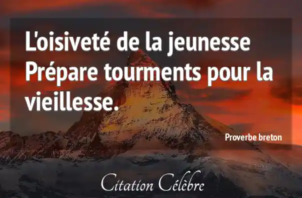 L'oisiveté de la jeunesse Prépare tourments pour la vieillesse.
