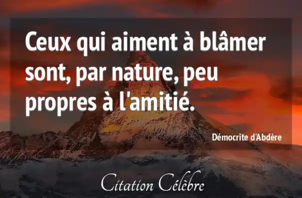 Ceux qui aiment à blâmer sont, par nature, peu propres à l'amitié.