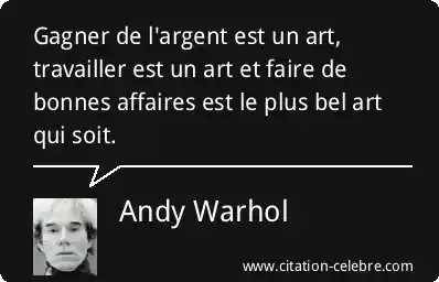 Gagner de l'argent est un art, travailler est un art et faire de bonnes affaires est le plus bel art qui soit.