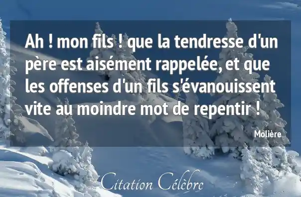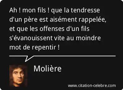 Ah ! mon fils ! que la tendresse d'un père est aisément rappelée, et que les offenses d'un fils s'évanouissent vite au moindre mot de repentir !