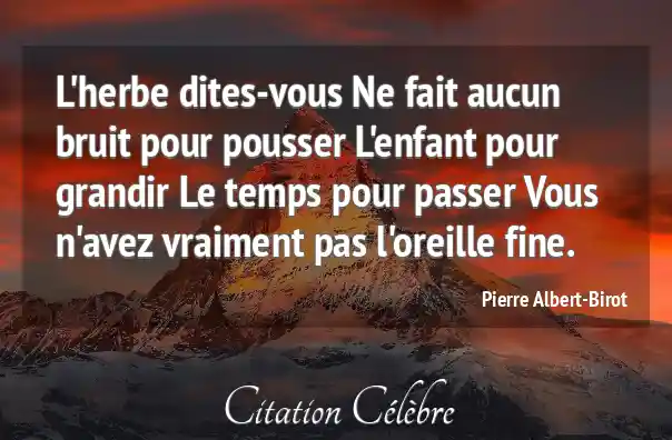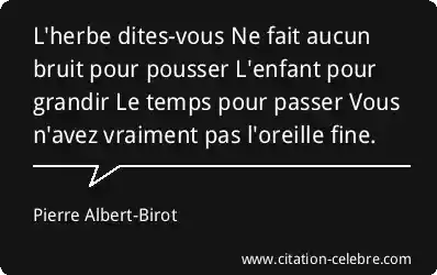 L'herbe dites-vous Ne fait aucun bruit pour pousser L'enfant pour grandir Le temps pour passer Vous n'avez vraiment pas l'oreille fine.