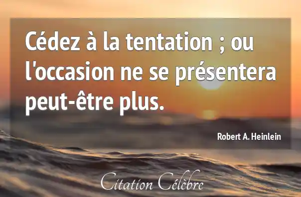 Cédez à la tentation ; ou l'occasion ne se présentera peut-être plus.