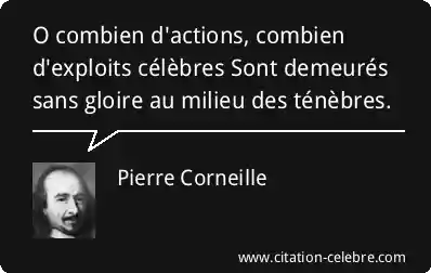 O combien d'actions, combien d'exploits célèbres Sont demeurés sans gloire au milieu des ténèbres.