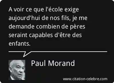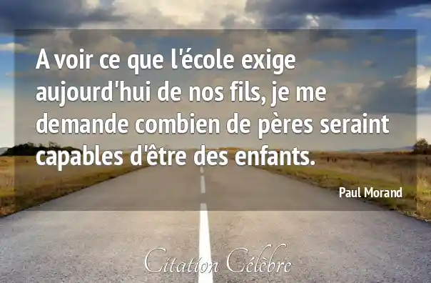 A voir ce que l'école exige aujourd'hui de nos fils, je me demande combien de pères seraint capables d'être des enfants.