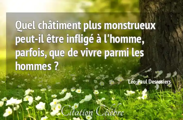 Quel châtiment plus monstrueux peut-il être infligé à l'homme, parfois, que de vivre parmi les hommes ?