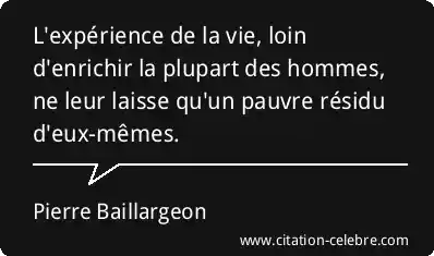L'expérience de la vie, loin d'enrichir la plupart des hommes, ne leur laisse qu'un pauvre résidu d'eux-mêmes.