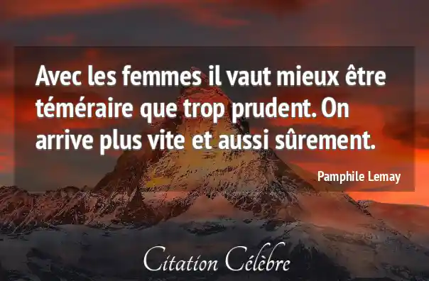 Avec les femmes il vaut mieux être téméraire que trop prudent. On arrive plus vite et aussi sûrement.
