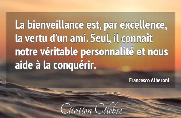 La bienveillance est, par excellence, la vertu d'un ami. Seul, il connaît notre véritable personnalité et nous aide à la conquérir.