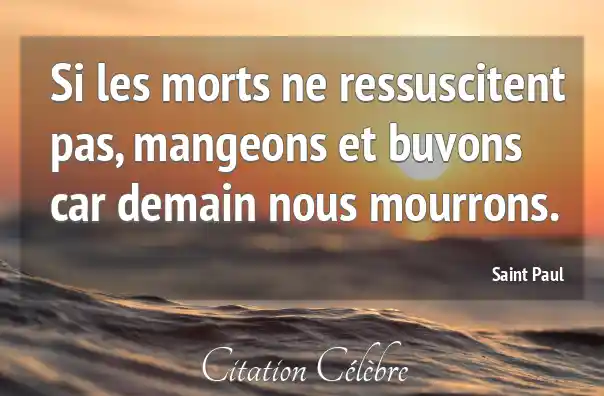 Si les morts ne ressuscitent pas, mangeons et buvons car demain nous mourrons.