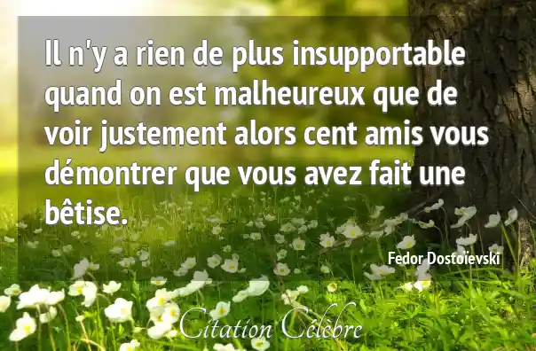 Il n'y a rien de plus insupportable quand on est malheureux que de voir justement alors cent amis vous démontrer que vous avez fait une bêtise.
