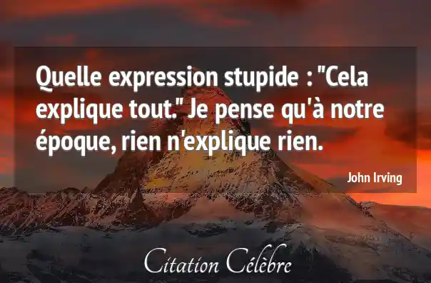 Quelle expression stupide : "Cela explique tout." Je pense qu'à notre époque, rien n'explique rien.