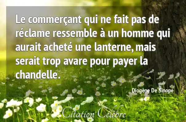 Le commerçant qui ne fait pas de réclame ressemble à un homme qui aurait acheté une lanterne, mais serait trop avare pour payer la chandelle.