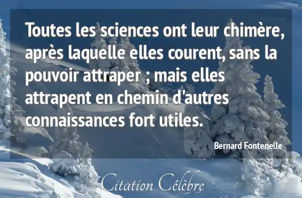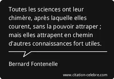 Toutes les sciences ont leur chimère, après laquelle elles courent, sans la pouvoir attraper ; mais elles attrapent en chemin d'autres connaissances fort utiles.