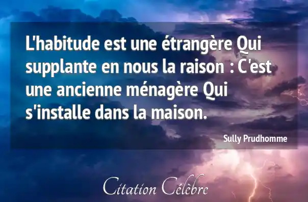 L'habitude est une étrangère Qui supplante en nous la raison : C'est une ancienne ménagère Qui s'installe dans la maison.