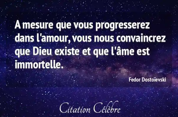 A mesure que vous progresserez dans l'amour, vous nous convaincrez que Dieu existe et que l'âme est immortelle.