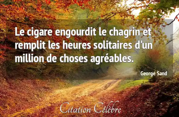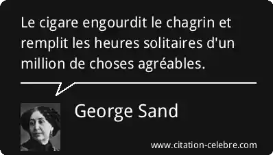 Citation George Sand choses : Le cigare engourdit le chagrin et remplit les heures solitaires...