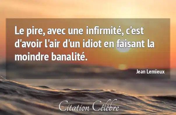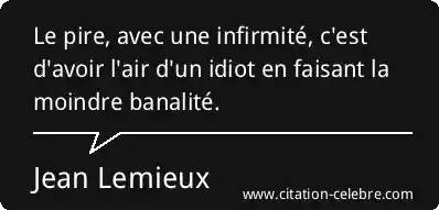 Citation Jean Lemieux avoir : Le pire, avec une infirmité, c'est d'avoir l'air d'un idiot...