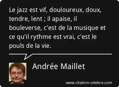 Le jazz est vif, douloureux, doux, tendre, lent ; il apaise, il bouleverse, c'est de la musique et ce qu'il rythme est vrai, c'est le pouls de la vie.