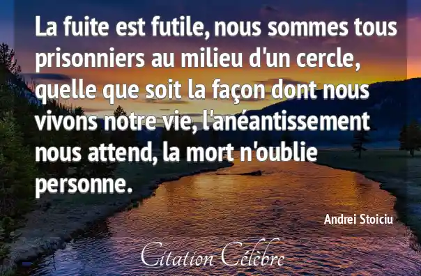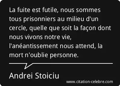 La fuite est futile, nous sommes tous prisonniers au milieu d'un cercle, quelle que soit la façon dont nous vivons notre vie, l'anéantissement nous attend, la mort n'oublie personne.