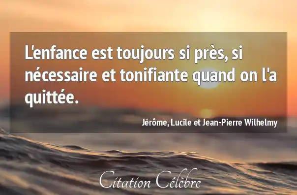 L'enfance est toujours si près, si nécessaire et tonifiante quand on l'a quittée.