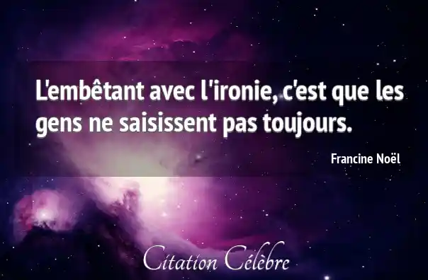 L'embêtant avec l'ironie, c'est que les gens ne saisissent pas toujours.