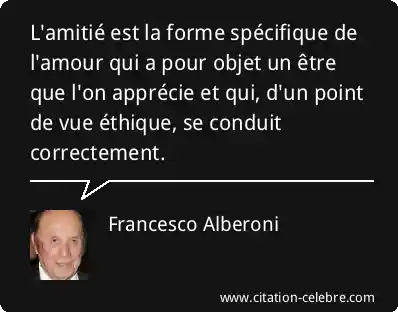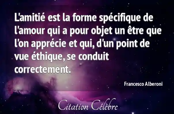L'amitié est la forme spécifique de l'amour qui a pour objet un être que l'on apprécie et qui, d'un point de vue éthique, se conduit correctement.