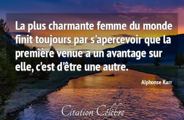 La plus charmante femme du monde finit toujours par s'apercevoir que la première venue a un avantage sur elle, c'est d'être une autre.