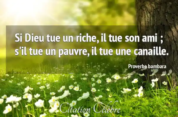 Si Dieu tue un riche, il tue son ami ; s'il tue un pauvre, il tue une canaille.