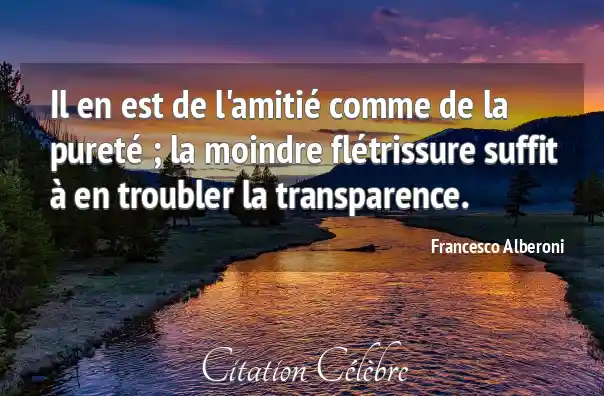 Il en est de l'amitié comme de la pureté ; la moindre flétrissure suffit à en troubler la transparence.