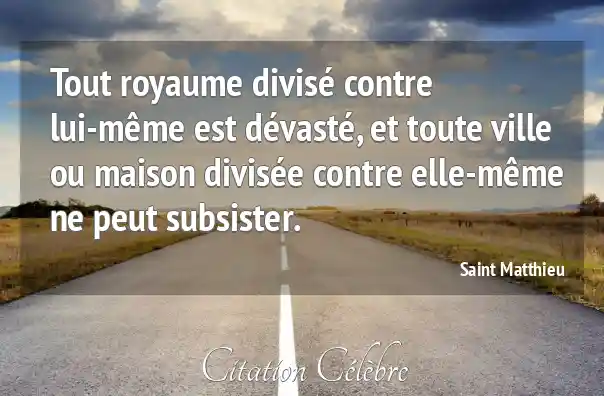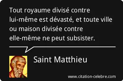 Citation Saint Matthieu lui : Tout royaume divisé contre lui-même est dévasté, et toute ville...