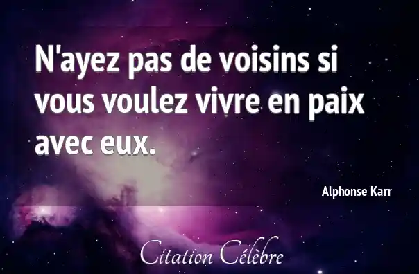 N'ayez pas de voisins si vous voulez vivre en paix avec eux.