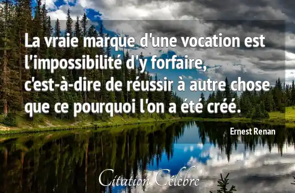 La vraie marque d'une vocation est l'impossibilité d'y forfaire, c'est-à-dire de réussir à autre chose que ce pourquoi l'on a été créé.