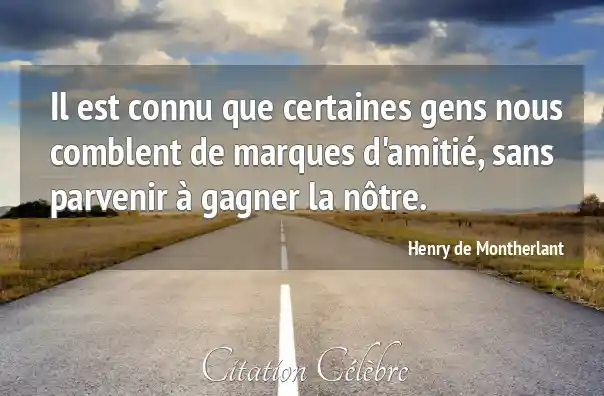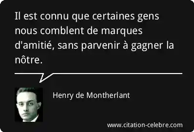 Il est connu que certaines gens nous comblent de marques d'amitié, sans parvenir à gagner la nôtre.