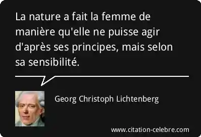 La nature a fait la femme de manière qu'elle ne puisse agir d'après ses principes, mais selon sa sensibilité.