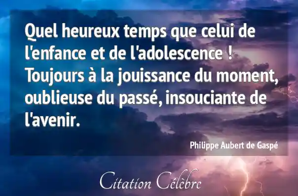 Quel heureux temps que celui de l'enfance et de l'adolescence ! Toujours à la jouissance du moment, oublieuse du passé, insouciante de l'avenir.