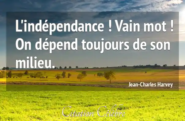 L'indépendance ! Vain mot ! On dépend toujours de son milieu.