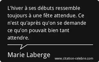 L'hiver à ses débuts ressemble toujours à une fête attendue. Ce n'est qu'après qu'on se demande ce qu'on pouvait bien tant attendre.