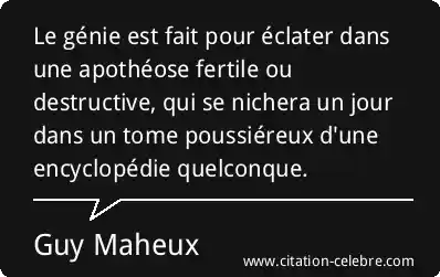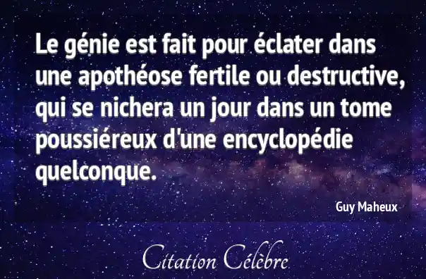 Le génie est fait pour éclater dans une apothéose fertile ou destructive, qui se nichera un jour dans un tome poussiéreux d'une encyclopédie quelconque.