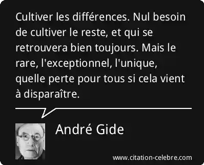Cultiver les différences. Nul besoin de cultiver le reste, et qui se retrouvera bien toujours. Mais le rare, l'exceptionnel, l'unique, quelle perte pour tous si cela vient à disparaître.