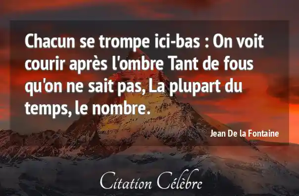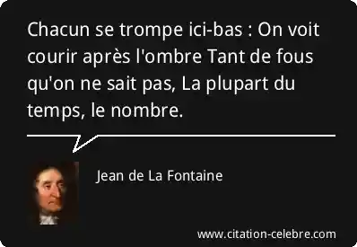 Chacun se trompe ici-bas : On voit courir après l'ombre Tant de fous qu'on ne sait pas, La plupart du temps, le nombre.