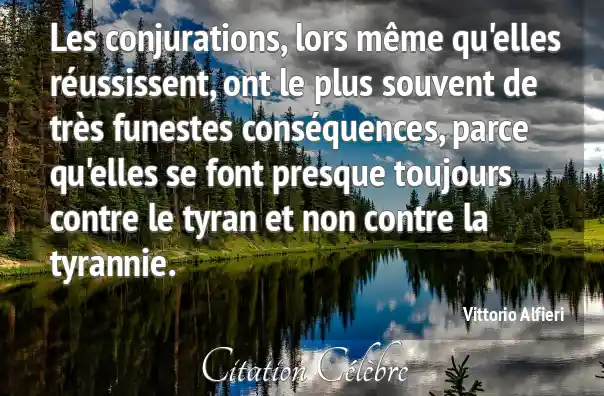 Les conjurations, lors même qu'elles réussissent, ont le plus souvent de très funestes conséquences, parce qu'elles se font presque toujours contre le tyran et non contre la tyrannie.